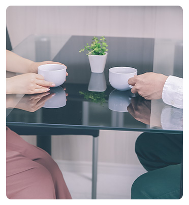 お問合せいただいた後、結婚に対する思いやお相手の希望などをまずはじっくり伺います。カウンセリングさせていただく場所はカフェや、レストラン、ご希望であればオンラインでのカウンセリングも設定できますのでご相談ください。